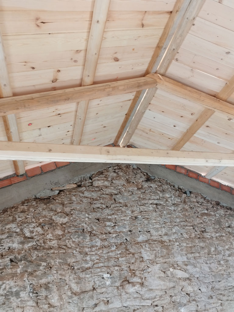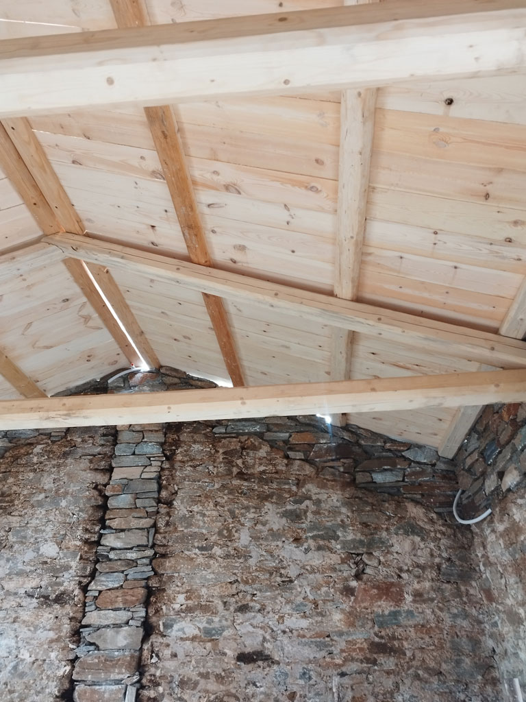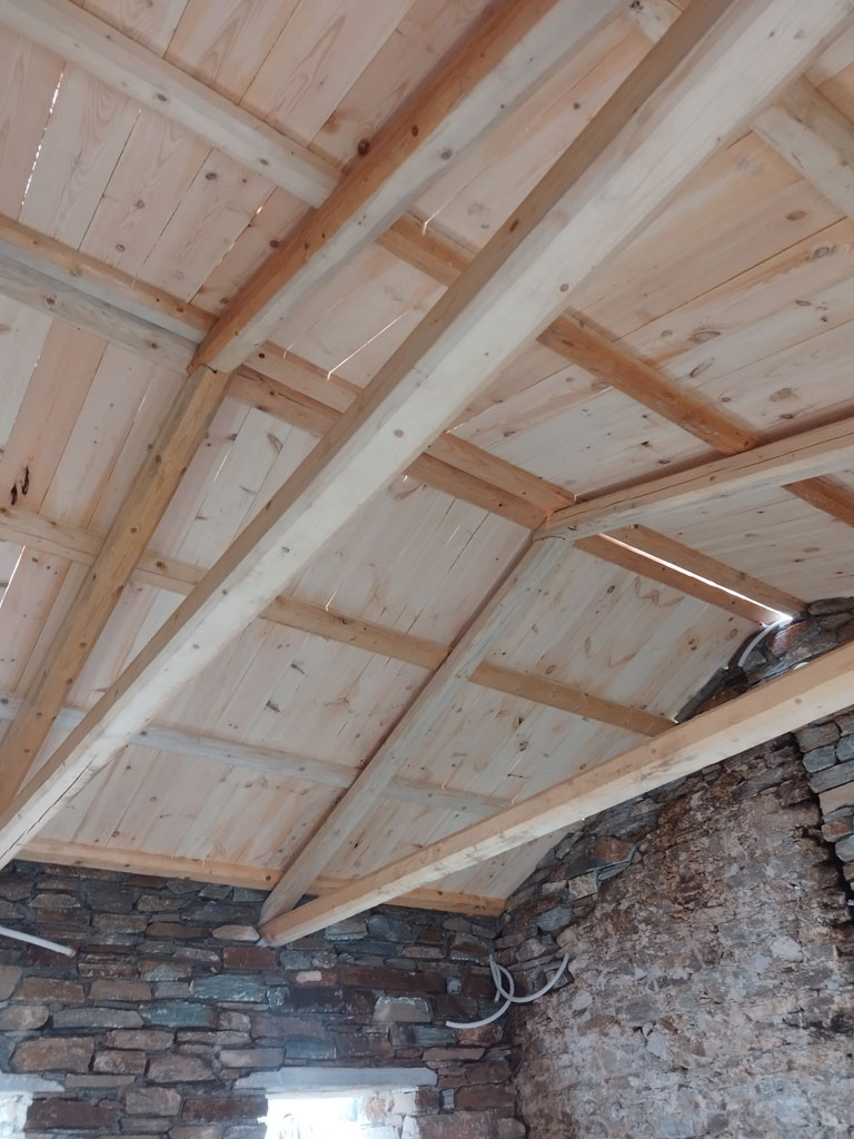 Κατασκευάστηκε στερεό ξύλινο σκελετό (καρκάς) για την τοποθέτηση πέτρινης σκέπασης. Η δομή σχεδιάστηκε για να αντέχει στο βάρος και τις καιρικές συνθήκες, εγγυώμενα ασφάλεια και σωστή αποστράγγιση.