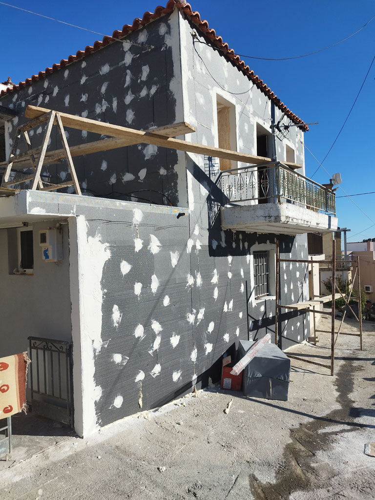 Έργο εγκατάστασης θερμοπρόσοψης σε ένα μικρό σπίτι. Η στοχευμένη και έξυπνη επέμβαση αποτέλεσε την ιδανική λύση για την αναβάθμιση της κατοικίας, προσφέροντας άμεσα οφέλη χωρίς την ανάγκη εκτενούς και δαπανηρών δομικών εργασιών.